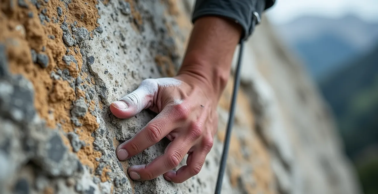 Le danger le plus tangible en falaise est celui d’une prise qui cède. Cette peur est légitime, car les conséquences peuvent être graves. En France, un rapport de la FFME souligne que près de 24% des sinistres en escalade sont dus à des mouvements traumatiques, incluant les chutes provoquées par la rupture d’une prise ou d’un bloc. Le premier réflexe est de taper sur le rocher, mais un « diagnostic structurel » plus poussé est nécessaire, surtout sur des roches sédimentaires comme le calcaire, réputées pour leurs blocs en équilibre précaire.