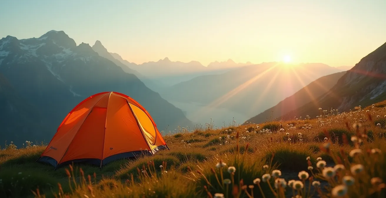 Le choix de l’emplacement est le deuxième acte de votre bivouac responsable. L’objectif est simple : laisser le lieu exactement comme vous l’avez trouvé. Cela signifie trouver une surface qui ne sera pas dégradée par votre passage. Évitez à tout prix les tapis de fleurs sauvages, les tourbières ou les zones humides, qui abritent des écosystèmes très fragiles et mettent des années à se régénérer. Préférez un emplacement déjà utilisé si possible (taches de terre battue), un sol herbeux et robuste, ou une surface de sable ou de petits graviers.
